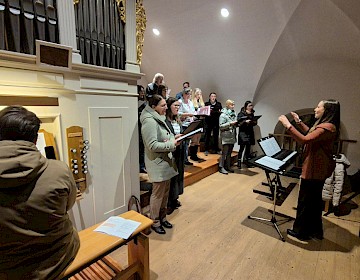 Unter dem Motto „A Liacht in der dunklen Zeit“ fand am Abend des 2. Adventssonntags eine musikalische Andacht in der Pfarrkirche St. Peter und Paul in Ergoldsbach statt. Mitgewirkt haben: der Kirchenchor der Pfarrkirche St. Peter und Paul, der Kinderchor Ergoldsbach, die Schola Ergoldsbach, Martha Spielbauer sowie Daniel Harlander und Vinzenz Doering.
