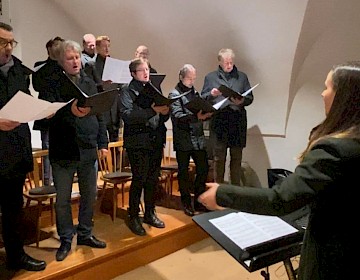 Im warmen Kerzenschein erstrahlte die Ergoldsbacher Pfarrkirche am Samstagabend, als das Männerensemble der Münchner Dommusik der Roratemesse eine besonders festliche Atmosphäre verlieh. Das Ensemble entstand aus dem Kreis der Domkantoren, nachdem die Münchner Dommusik angefragt hatte, ob die Männer die Sonntagsvespern übernehmen könnten. Die musikalische Leitung der Männerstimmen liegt seit Herbst 2023 bei Vinzenz Doering, der zu diesem Zeitpunkt seine Assistenzzeit am Münchner Dom