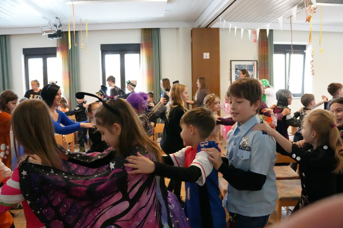 Lustige Gruppenspiele, schwungvolle Tänze und fetzige Faschingsmusik von DJ Johannes, sorgten für beste Stimmung. Zwischen Luftschlangen, Luftballons und Girlanden wurde gehüpft, gesungen und herzhaft gelacht. Zur Stärkung gab es Wiener, Brezen und Süßigkeiten, genau das Richtige für kleine Narren mit viel Energie.