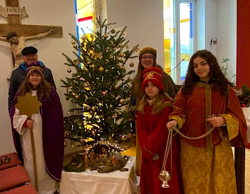 „Grüß Gott, ihr Leute, lasst uns ein, wir möchten Weihnachtsboten sein. Wir bringen Segen in dies Haus, der helle Stern geht uns voraus.“ Mit diesem traditionellen Gruß besuchten vier Sternsingerinnen am vergangenen Samstag das BRK-Seniorenwohn- und Pflegeheim in Ergoldsbach. Als Könige verkleidet zogen die Mädchen durch alle drei Etagen der Einrichtung und brachten den Bewohnerinnen und Bewohnern den Segen der Weihnacht sowie gute Wünsche für das neue Jahr.