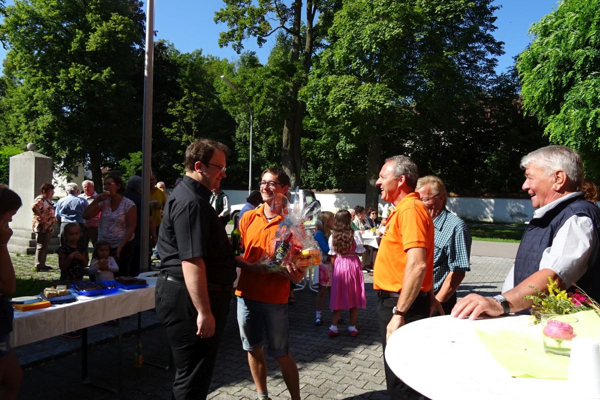 Nicht in den Himmel, sondern zu seiner neuen Aufgabe in der Pfarreiengemeinschaft Pilsting-Großköllnbach verabschiedete sich Kaplan Eckl am Ende des Gottesdienstes mit dankbaren Worten. „Sehen sie mir meine menschlichen Fehler nach und bewahren sie sich ihre Gemeinschaft im Glauben!“, bat er alle und bewies mit seiner bewegenden Ansprache erneut, dass er, wie Pfarrgemeinderatssprecherin Gerlinde Gahr es formulierte „ein Mann der Tat und des Wortes“ ist. Viele Pfarrangehörige nutzten schließlich nach der Messfeier die Gelegenheit, sich am Kirchplatz mit netten Worten, guten Wünschen und einem Händedruck von Kaplan Eckl zu verabschieden.