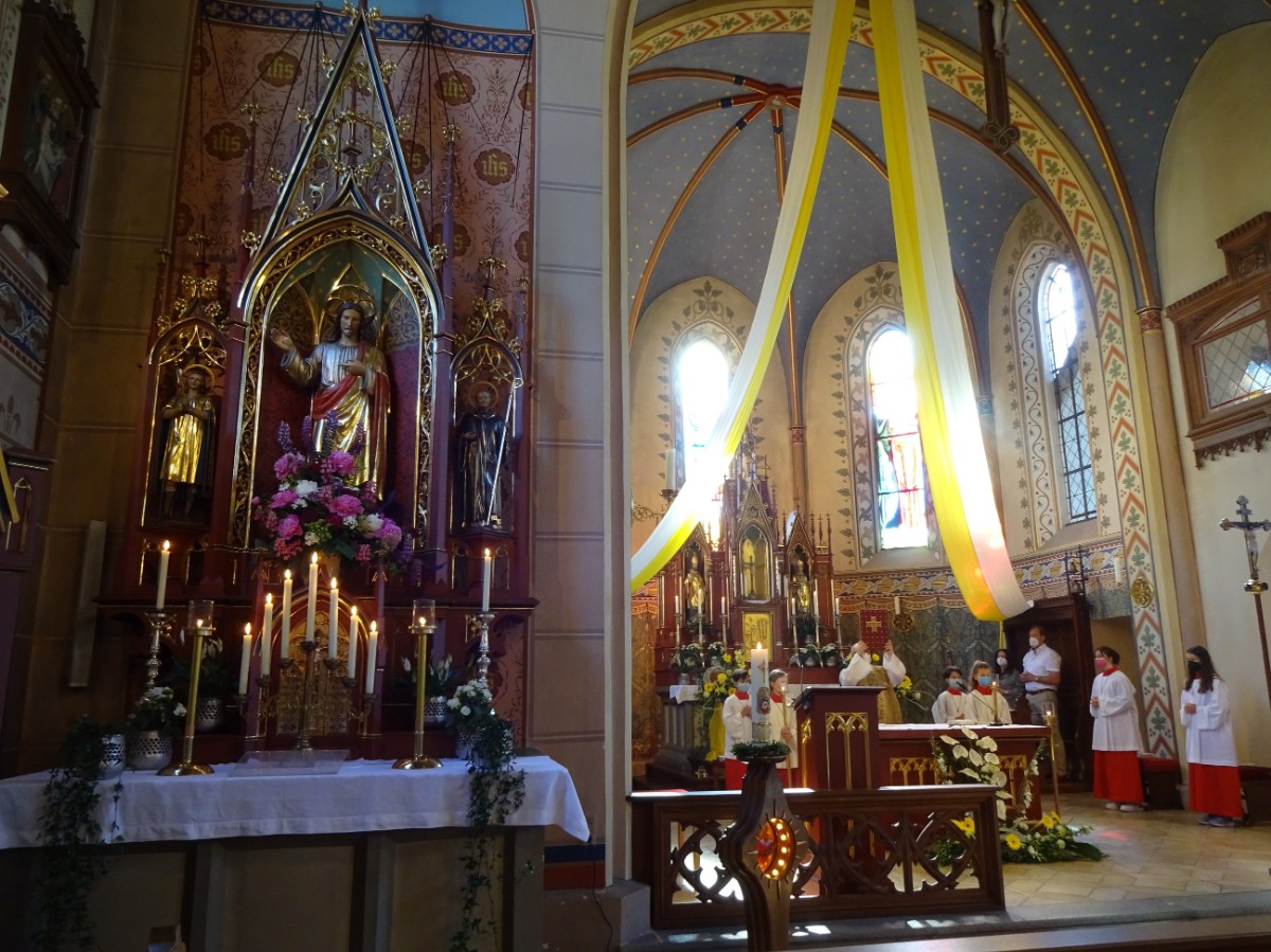 Gleich zweimal feierte Kaplan Stefan Hackenspiel in der Pfarrkirche Bayerbach das Herz-Jesu-Fest. Zunächst am eigentlichen Festtag (11.06.) mit einem Gottesdienst und einer eucharistischen Anbetung, dann nochmal am Sonntag (13.06.) mit einer festlichen Messfeier, bei der auch viele Mitglieder der Herz-Jesu-Bruderschaft dabei waren.