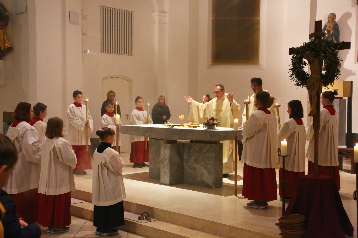 Die Gabenprozession der zahlreichen Ministranten, zusammen mit den Flambeauleuchterträgern, trug zur feierlichen Stimmung des Gottesdienstes bei. Nach dem Lied „Beim letzten Abendmahle“, in das die vielen Gläubigen einstimmten, erklang noch einmal festliche Orgelmusik von Organistin Maria Weber, alle Glocken und Altarglocken läuteten um dann bis zur Osternacht zu verstummen.