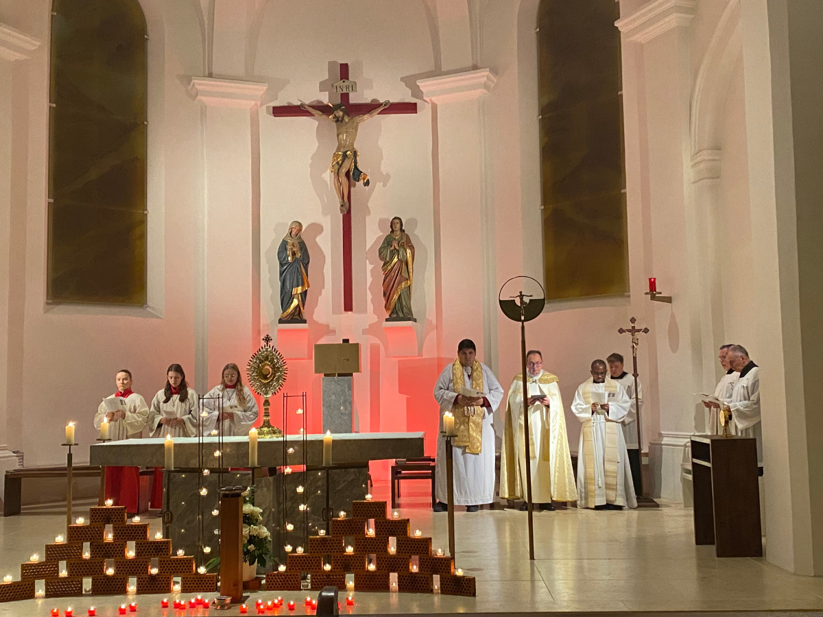 Den liturgischen Abschluss bildete eine feierliche Vesper, musikalisch getragen von Vinzenz Doering an der Orgel. Mit dem eucharistischen Segen, den Bischöflich Geistlicher Rat Pfarrer Stefan Anzinger spendete, endete der Christkönigssonntag und zugleich das Kirchenjahr in einer Atmosphäre tiefer Andacht und Gemeinschaft.