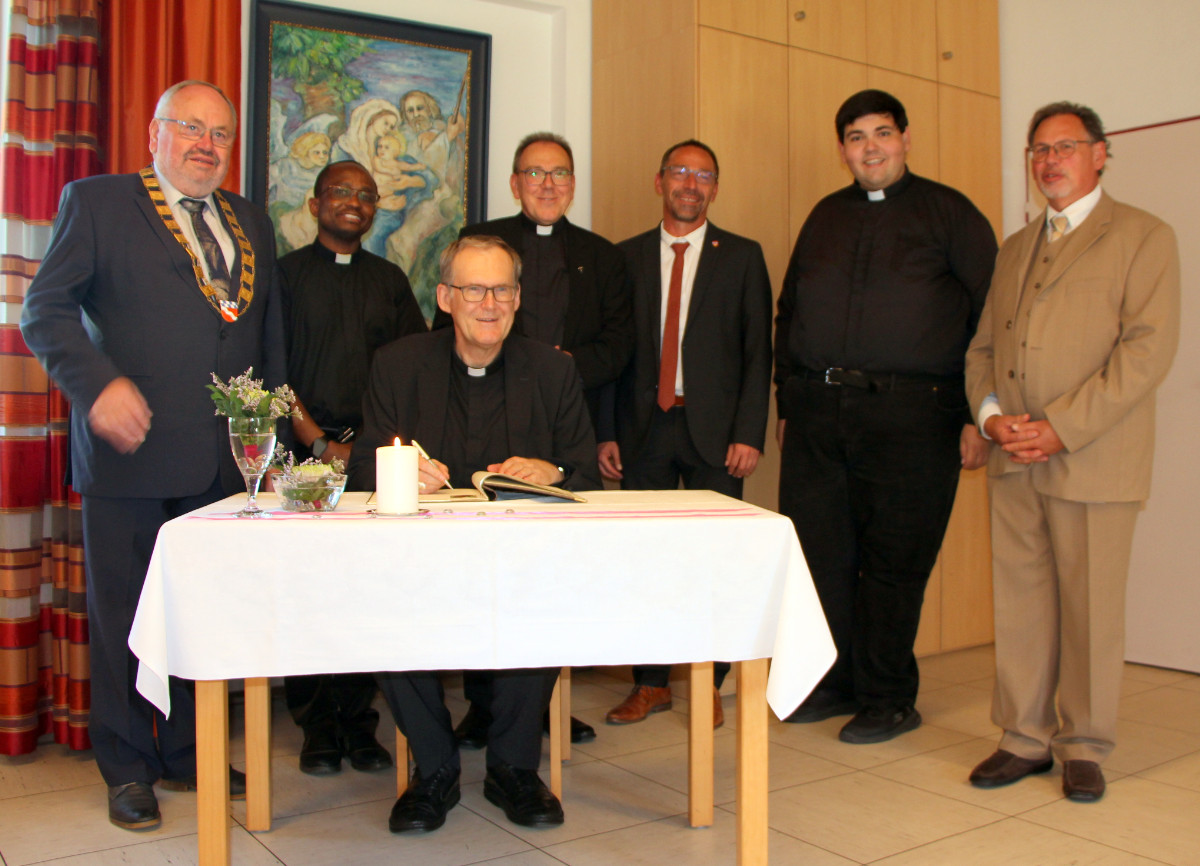 Dort griff er – ganz bodenständig – zu Stift und Tinte, um sich mit besten Wünschen für Markt und Pfarrei ins Goldene Buch einzutragen.