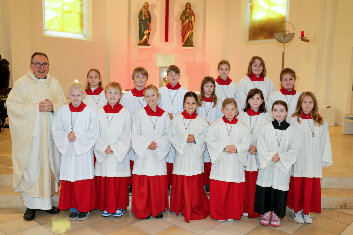 Viele große und kleine Mitfeiernde begrüßten dabei 17 neue Ministrantinnen und Ministranten die feierlich in die Gemeinschaft aufgenommen wurden.