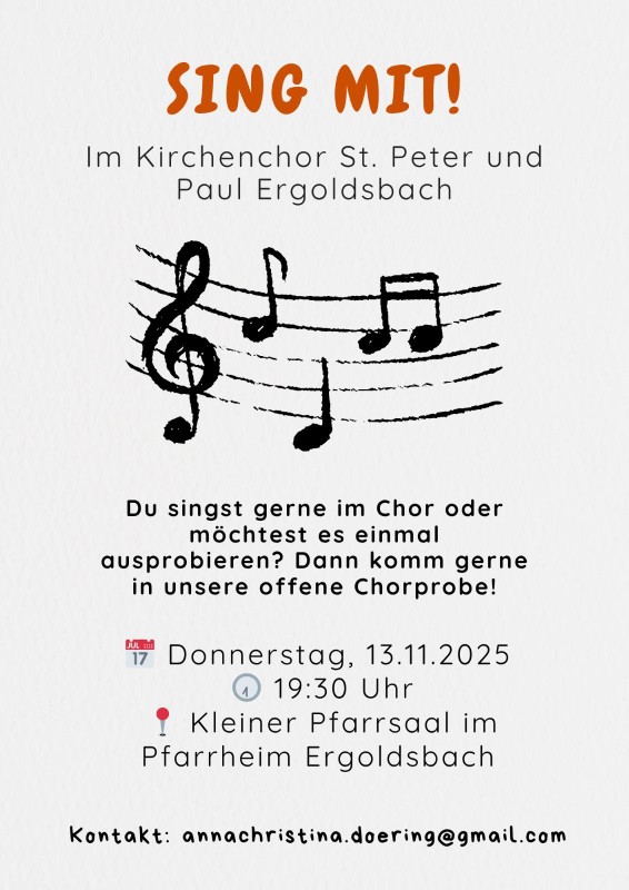 Du singst gerne im Chor oder möchtest es einmal ausprobieren? Dann komm gerne in unsere offene Chorproben.