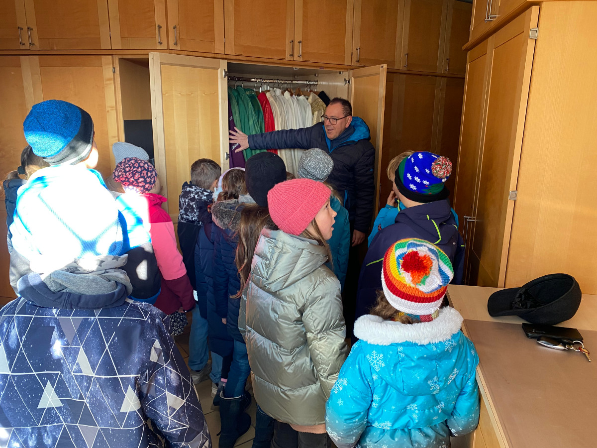 Schon vor dem Portal begann die Entdeckungstour: Die Kinder bewunderten die eindrucksvolle Fassade, bevor im Eingangsbereich das große gotische Kreuz ihre Aufmerksamkeit fesselte. Drinnen führte Pfarrer Anzinger die Gruppe durch das Gotteshaus – vom Taufbecken über den Altarraum bis zur Seitenkapelle. Selbst die sonst verborgene Sakristei öffnete ihre Türen und löste großes Staunen sowie viele neugierige Fragen aus, die der Pfarrer mit Fachwissen und Humor beantwortete.
