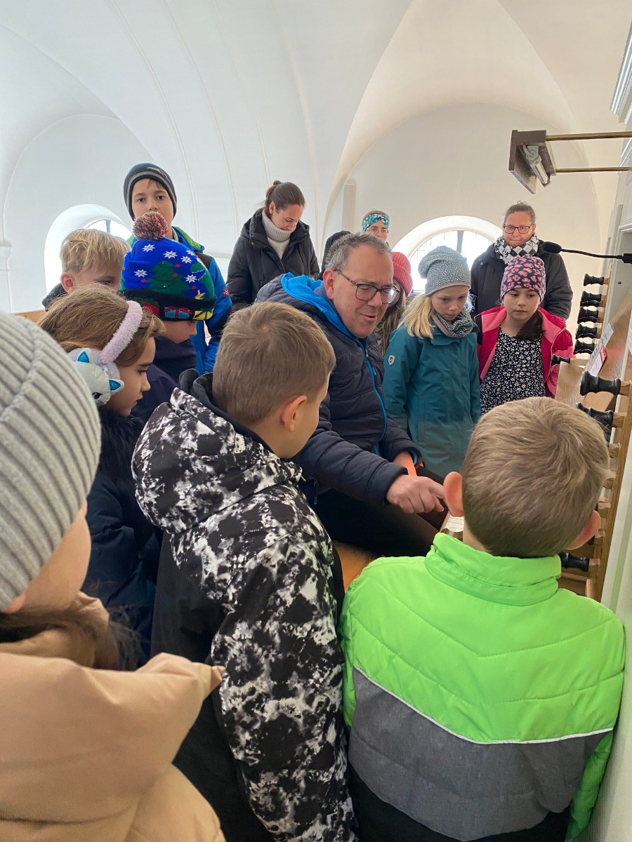 Ein besonderer Höhepunkt erwartete die Kinder auf der Empore. Dort zeigte Pfarrer Anzinger, dass er nicht nur theologisch, sondern auch musikalisch bestens bewandert ist: An der Schädlerorgel zog er „alle Register“ und ließ mit flinken Fingern kraftvolle wie zarte Töne erklingen - zur sichtlichen Begeisterung seiner jungen Zuhörer.