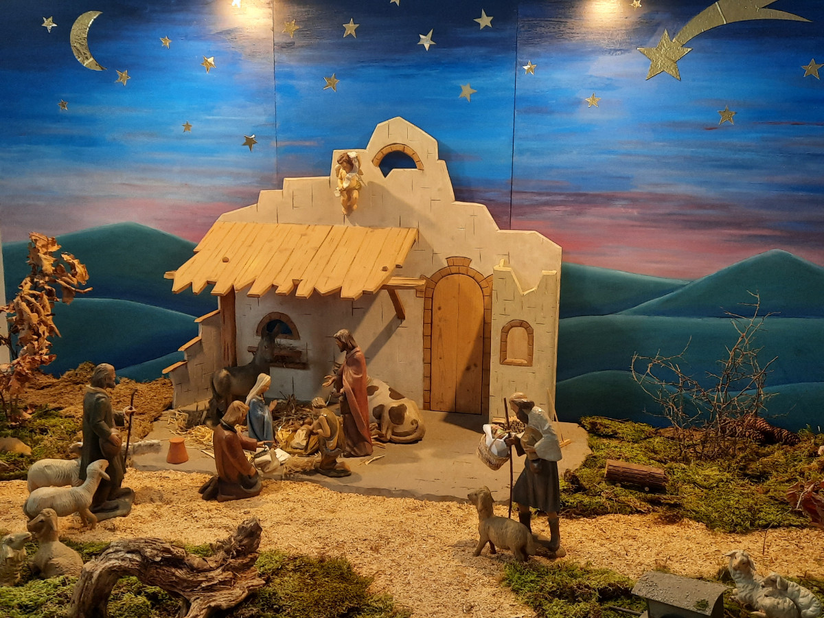 Doch nicht nur der Baum macht die Pfarrkirche zu einem besonderen Ziel in der Weihnachtszeit. Auch die liebevoll gestaltete Krippe ist ein echter Blickfang. Die großen Figuren ziehen besonders die Kinder an. Im Hintergrund spannt sich ein nachtblauer Sternenhimmel, der der Szene eine warme, friedliche Tiefe verleiht. Gemalt wurde dieser Himmel bereits vor einigen Jahren von Konrad Anzinger, dem Vater von Pfarrer Stefan Anzinger. Seine Arbeit lädt dazu ein, länger zu verweilen, die Stille zu genießen und mitten im Trubel der Zeit zur Ruhe zu kommen.