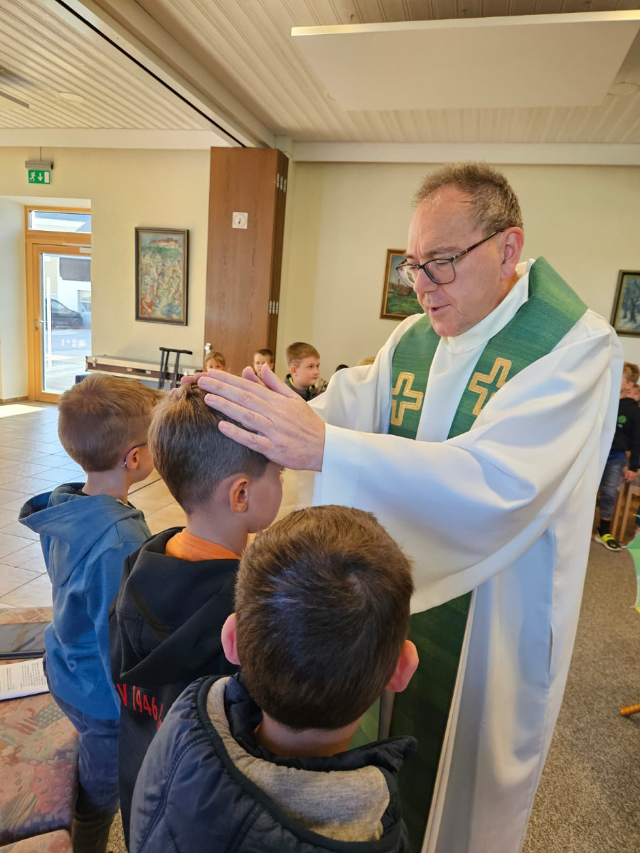 Mit kurzen Gebeten, fröhlichen Liedern und den Fürbitten, wurde der Wortgottesdienst lebendig und kindgerecht gefeiert.