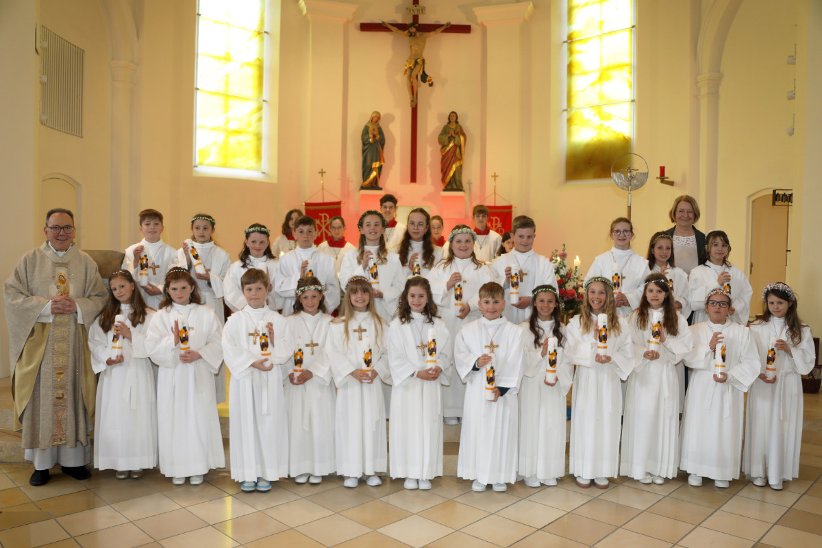 Die Kinder brachten sich aktiv in den Gottesdienst ein, indem sie Kyrierufe, Fürbitten und Dankrufe vortrugen. Nach dem Entzünden der Erstkommunionkerzen an der Osterkerze und der gemeinsamen Erneuerung des Taufversprechens empfingen sie zum ersten Mal die heilige Kommunion.