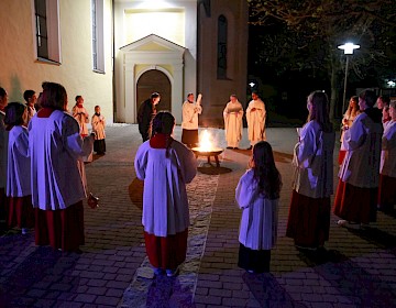 Am frühen Nachmittag des Heiligabends fand in der festlich geschmückten Pfarrkirche St. Peter und Paul das Krippenspiel „Auf zum Stall“ statt. Mit der Szene, die einen Fokus auf die Hirten, gespielt von Martha Brückl und Verena und Johannes Ewender legte, boten die Ministranten der Pfarrei Ergoldsbach einen kleinen Einblick, was sich damals in der Heiligen Nacht zugetragen hatte.