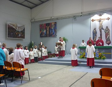 Ein Pfarrer, der während der Predigt Seifenblasen bläst, eine Pfarrgemeinde, die die Hände fest ineinander verschränkt, Geistliche, die für den guten Zweck seifenwassertriefende Rutschpartien hinlegen; das sind nur einige Höhepunkte des Pfarrfestes, das die Pfarrei St. Peter & Paul Ergoldsbach am Sonntag (28.06.) anlässlich des Kirchenpatroziniums feierte. Viele Ehrenamtliche waren stundenlang im Einsatz, mehrere Hundert Besucher waren begeistert.